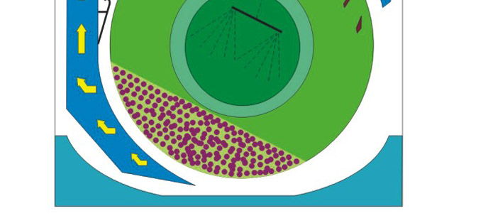 片芯在全封閉潔凈的篩網(wǎng)滾筒內(nèi),不停的作復(fù)雜軌跡運(yùn)動。按設(shè)定工藝流程的參數(shù)與要求,經(jīng)微機(jī)控制處理,自動地將包衣介質(zhì)通過噴槍霧化均勻地噴灑到片芯表面(糖衣介質(zhì)可用滴灑工藝)。同時滾筒在密封負(fù)壓狀態(tài)下,經(jīng)熱風(fēng)柜供給潔凈熱空氣穿透片床,由吸風(fēng)裝置通過滾筒底部篩孔排出。使片芯膜得到快速、均勻干燥,形成堅固光滑的表面包衣。