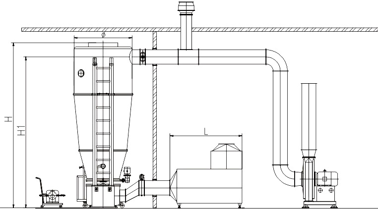 該設(shè)備有主機(jī)與輔機(jī)組成,具有供冷熱風(fēng)系統(tǒng),空氣進(jìn)化處理系統(tǒng),漿 料處理系統(tǒng),進(jìn)出料裝置系統(tǒng),自動(dòng)控制系統(tǒng)、風(fēng)管路等六個(gè)系統(tǒng)。工 作時(shí),物料加入承料斗內(nèi),經(jīng)凈化的熱空氣(負(fù)壓)從底部進(jìn)入制粒 室,使物料處于沸騰狀態(tài)。同時(shí)漿料經(jīng)噴霧系統(tǒng)處理,噴灑在呈流化狀 態(tài)的物料上,使之粘合聚集成顆粒。顆粒在氣流所攜熱空氣下水分得以 蒸發(fā)排除,形成理想、均勻的多微狀干燥顆粒。整個(gè)工藝操作均在密閉 狀態(tài)下進(jìn)行。